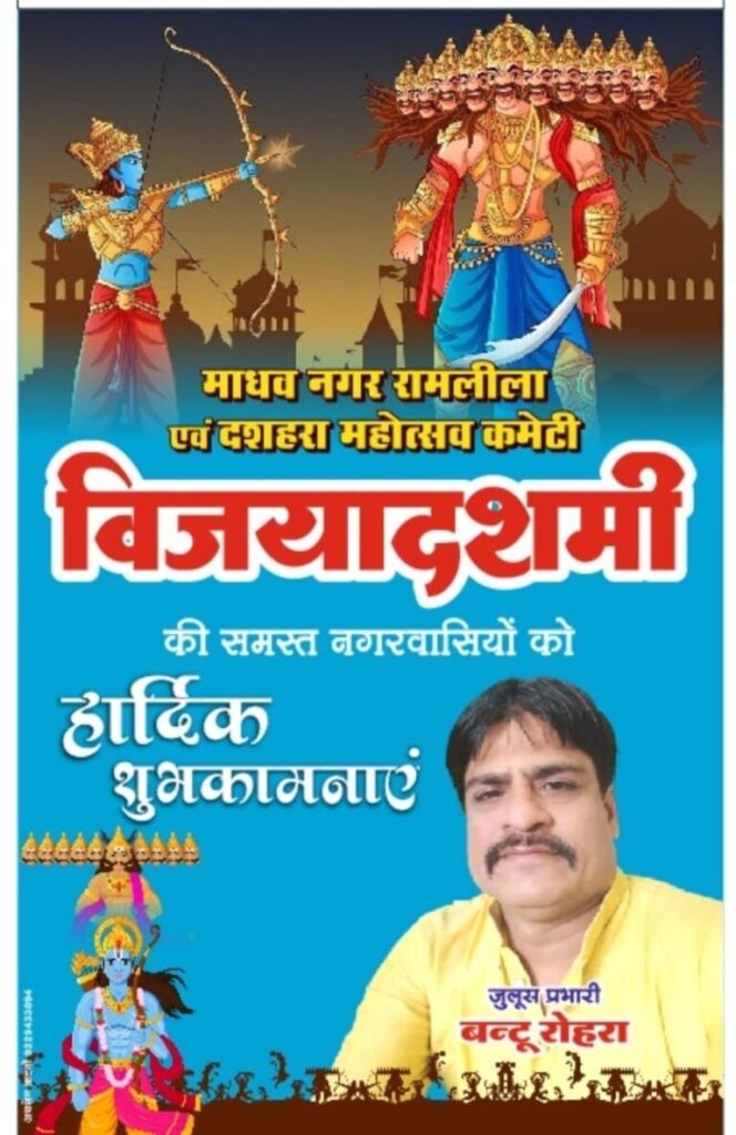 कटनी – 2 अक्टूबर 2025 आज माधव नगर में रावण दहन और भव्य दशहरा चल समारोह का आयोजन किया जाएगा। यह परंपरा स्वर्गीय परचाराम जी द्वारा शुरू की गई थी, जिसे हर साल पूरे उत्साह और श्रद्धा के साथ मनाया जाता है। इस वर्ष भी यह आयोजन पहले की तरह पूरे जोर-शोर से किया जा रहा है।श्री माधव नगर रामलीला कमेटी द्वारा आयोजित यह चल समारोह रात 8 बजे श्री रामलीला ग्राउंड से शुरू होगा। चल समारोह में श्री रामचंद्र जी की सुंदर झांकियां निकाली जाएंगी, जिसकी अगुवाई रावण महाराज करेंगे।