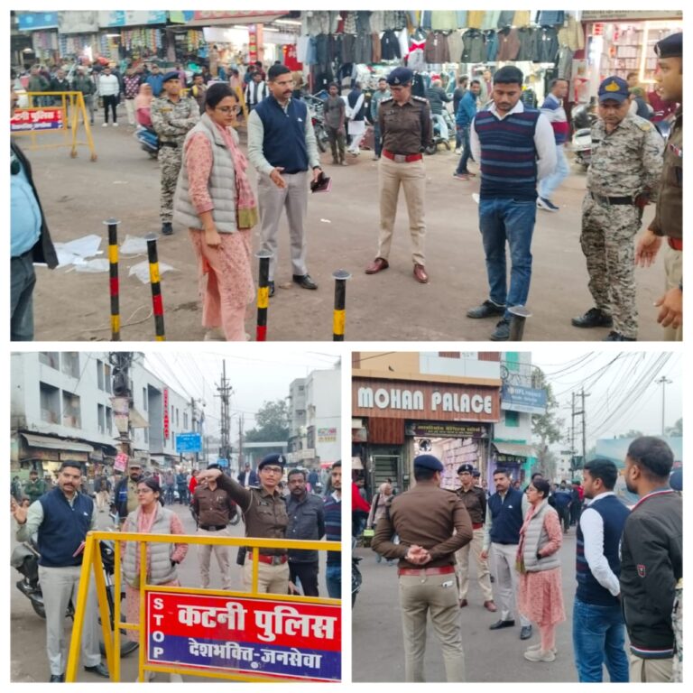 कटनी। शहर के सबसे व्यस्त स्टेशन रोड एवं मुख्य बाजार क्षेत्र में बिगड़ती यातायात व्यवस्था को दुरुस्त करने के लिए आज पुलिस अधीक्षक अभिनय विश्वकर्मा और निगमायुक्त तपस्या परिहार ने संयुक्त टीम के साथ बड़ा अभियान चलाया। अभियान में यातायात प्रभारी राहुल पांडेय और कोतवाली टीआई राखी पांडेय भी मौजूद रहे।अधिकारियों ने सुभाष चौक से रेलवे स्टेशन मार्ग तक पैदल भ्रमण करते हुए गलत तरीके से खड़े वाहनों, फुटपाथ पर फैले अतिक्रमण, लेफ्ट टर्न पर बने अवरोध और सड़क के बीच खड़े दो—चार पहिया वाहनों का मौके पर निरीक्षण किया। टीम ने तुरंत कार्रवाई करते हुए अव्यवस्थित पार्किंग और बाहर फैला दुकानों का सामान हटवाया, जिससे आवागमन सुचारू हो सका।