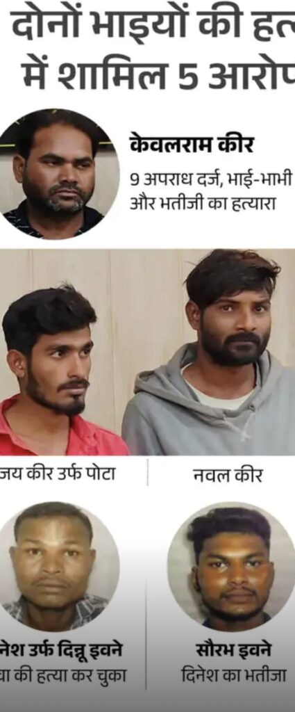 शुभम और करण की हत्या के मुख्य आरोपी केवलराम कीर (45) के खिलाफ 9 अपराध दर्ज हैं। इनमें हत्या और मारपीट के केस भी हैं। वह मूल रूप से रजौन गांव का रहने वाला है। उसके खिलाफ सबसे पहला केस 11 मई 2000 को हत्या, हत्या के प्रयास का दर्ज हुआ था। केवलराम ने अपने भाई, भाभी और भतीजी की हत्या की थी।